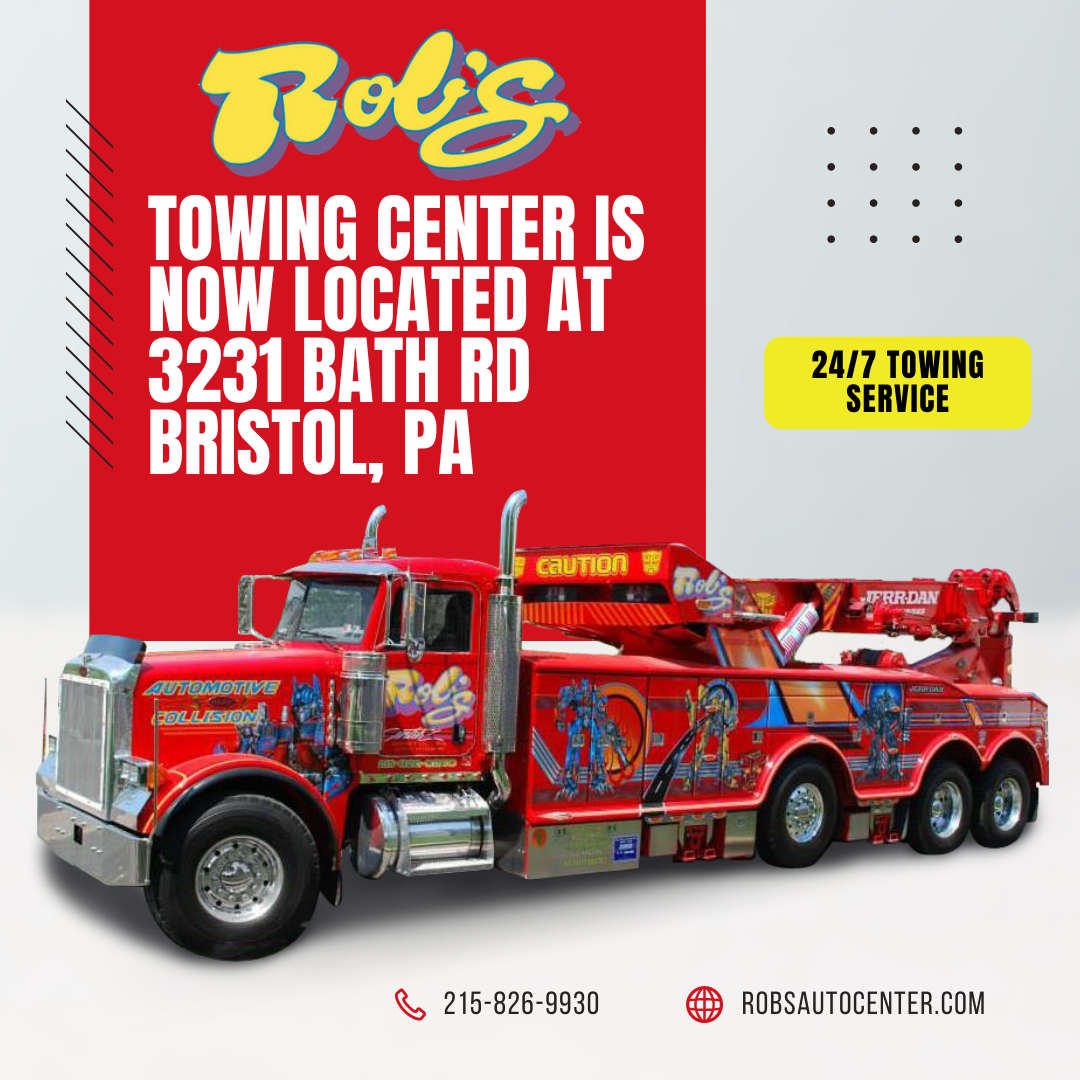 Rob’s Automotive Towing and Hauling has moved! You can now find the Towing Center at 3231 Bath Rd, Bristol Pa.